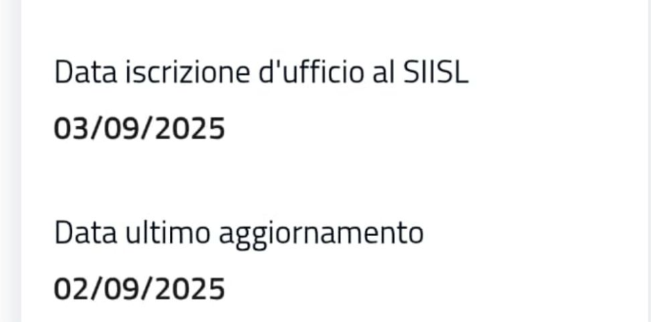 Nel fascicolo previdenziale dei disoccupati compare anche la data di iscrizione d’ufficio al SIISL. Ecco il caso di un disoccupato per la data è stata fissata al 3 settembre 2025, con indicato come ultimo aggiornamento la giornata del 2 settembre 2025: