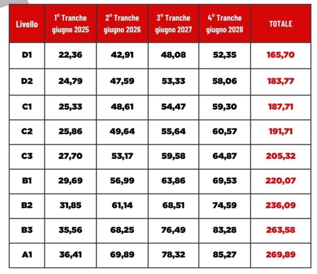 Numeri importanti, differenziati per livello, che nell’arco del quadriennio si attestano a 205,32 euro mensili per i livelli più alti. Tuttavia, osservando in profondità la scansione temporale degli incrementi, emergono elementi che stanno già alimentando discussione tra le ‘tute blu’.
